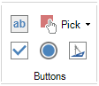 1. Go to the Dynamics ribbon then click the type of button you want to add to the display. For a plain text button, click . For a checkbox button, click . For a radio button, click . For a display button, click .