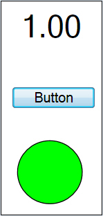 When the button is pressed the first time the button changes the variable var1 to 1 and that value is expressed as the value 1.00 in the Process Point and the color green in the circle. The second time you click the button var1 toggles back to 0, the Process Point shows 0.00 and the circle changes back to its default color of red. Buttons can be a quite powerful dynamic design element.