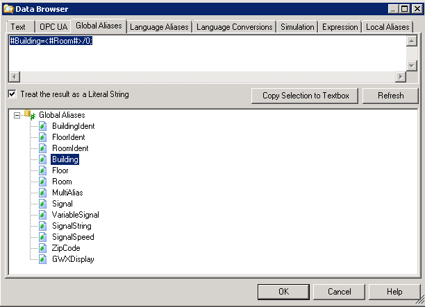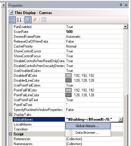 Aliasing is the ability to define a string (usually a short name) to represent another string (usually part or all of a tag name). An alias is a string that represents or describes an object or data point in a display. GraphWorX64 supports three different types of aliases: