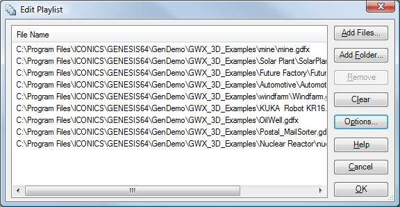 The Options button appears only when you are editing a playlist for the Carousel. Clicking this button opens the Playlist Options dialog box, which is described in Playlist Options.