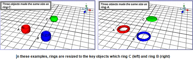 Select the Make Same Size menu item resizes the objects so that their dimensions—that is, their height, width, and depth—match the key object’s dimensions.
