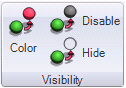 Click the Disable button in the Visibility section of the 3D Dynamics ribbon to create a dynamic that deactivates any actions that are associated with a particular 3D object. For this reason the Disable dynamic is always the last dynamic that can be placed into a multi-step action. At runtime, a disabled object remains in view, but does not respond to keyboard or mouse input. Disabling an object is a great way to ensure that program logic in your displays is enforced, or to disallow an action that you don't want the user to be able to perform.