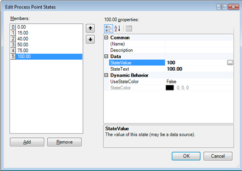 in the States property. This opens the Edit Process Point States dialog box, if you are working in Standard mode. Define the states 0, 15, 40, 50, 75, and 100.