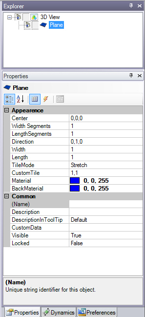 Add a plane primitive to your 3D view by clicking the plane icon in the Primitives section of the Home ribbon. The plane will appear in your 3D view, and you will see it listed in the Explorer and the Properties tab.