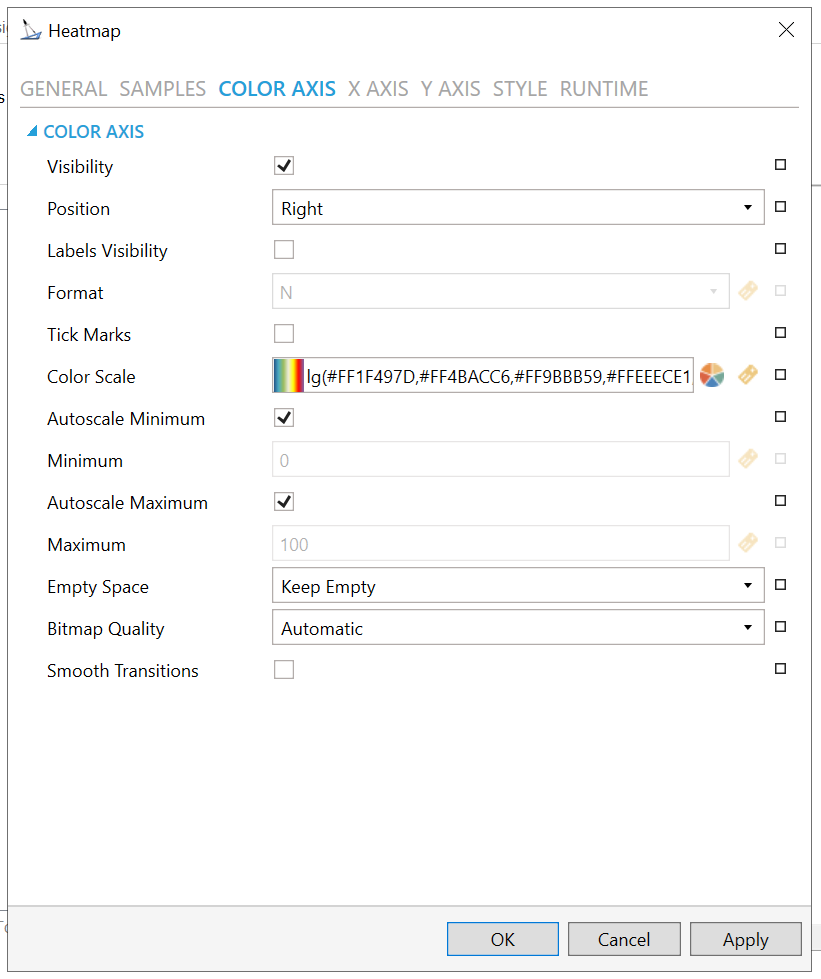 Visibility - Color axis visibility. Click the checkbox to make the color axis visible. You can also click on the