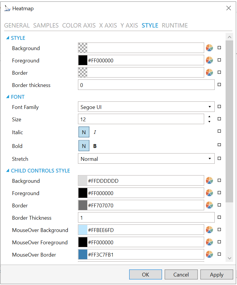 Border - Border brush of child controls. Enter a hex color code in the text entry field or click on the