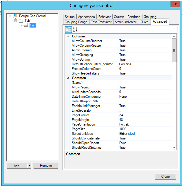 Adding a Recipe Grid Control