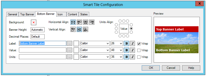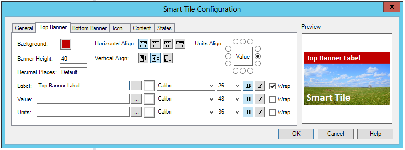 1. In the Top Banner tab of the Smart Tile Configuration dialog (shown below), you can set the following parameters: