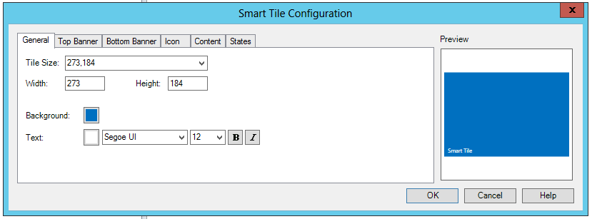 1. In the General tab of the Smart Tile Configuration dialog (shown below), you can set the following parameters: