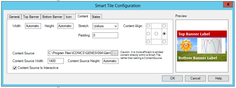 1. In the Content tab of the Smart Tile Configuration dialog (shown below), you can set the following parameters: