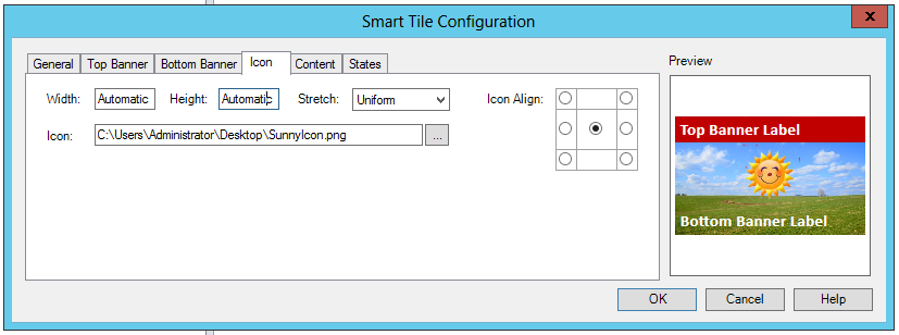 1. In the Icon tab of the Smart Tile Configuration dialog (shown below), you can set the following parameters: