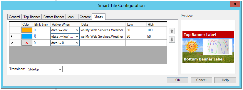 1. In the States tab of the Smart Tile Configuration dialog (shown below), you can set the following parameters: