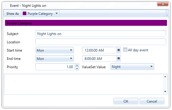 Double-click within your calendar (or click on the Edit Event button in the Schedule Control Runtime ribbon) to open the Edit Event dialog box. You can also modify an existing event or create a new event (by clicking on the Create Event button).