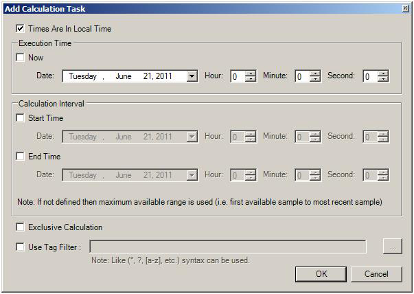 - You can enter a Start Time and leave the End Time empty so that all values stored after the Start Time are recalculated; or conversely you can leave the Start Time empty and specify an End Time so that all values that were stored up until the End Time are recalculated.