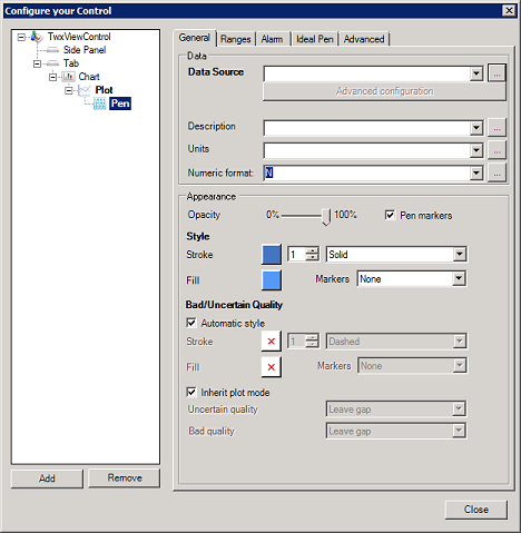 - Click the Configure button on the ribbon's TrendWorX64 Viewer Configuration tab to open the Configure Your Control dialog.