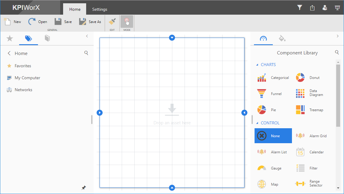 Note: Changing between split or grid mode will clear your existing canvas. You should decide what mode you want to use before you add any symbols to your dashboard.