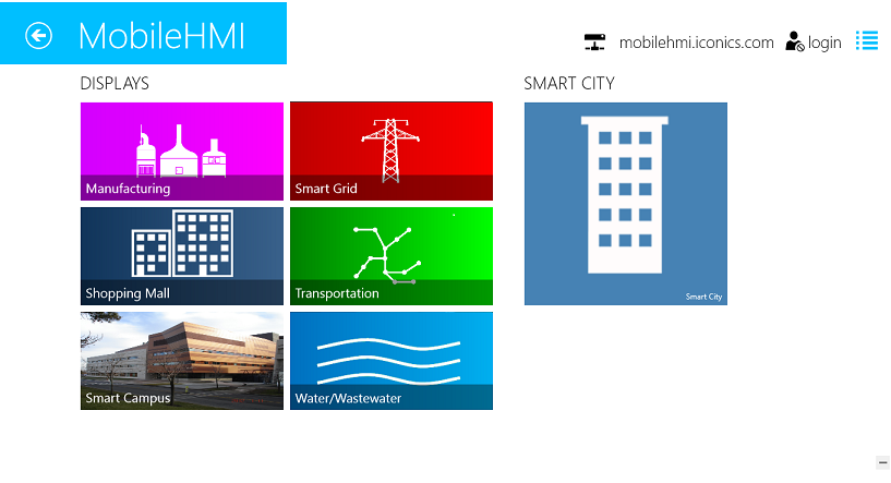 ICONICS offers a consistent user experience across all devices and operating systems by utilizing a preliminary interaction called the AppHub. This open interface is meant to allow quick access to graphics, alarms, trends and assets. Although configuration can allow direct loading of GraphWorX64 displays, the AppHub serves to unify the MobileHMI platform regardless of the device.