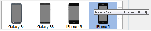 button expands this section in order to view all included preset devices. Hovering over a device icon provides its name, screen resolution and aspect ratio.