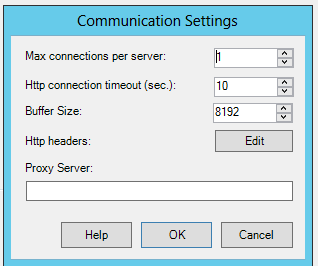 Http connection timeout (sec): Specifies the amount of time (in seconds) to wait for the Web server to respond.