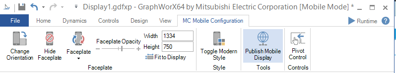 Publish Mobile Display Button Selected in the MobileHMI Configuration Ribbon