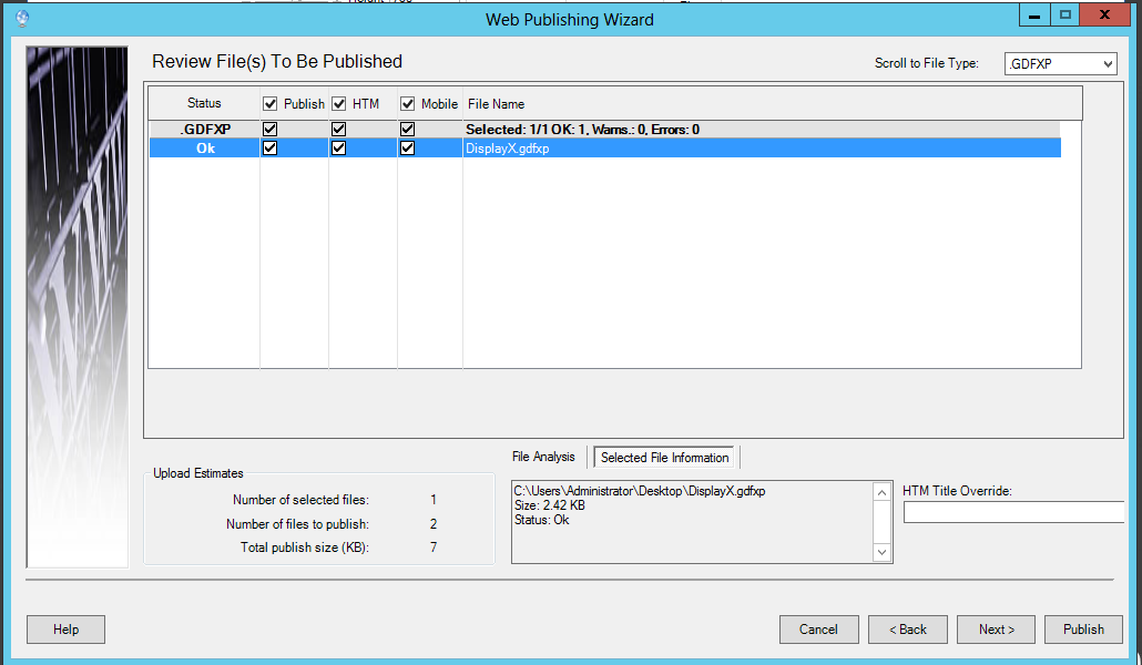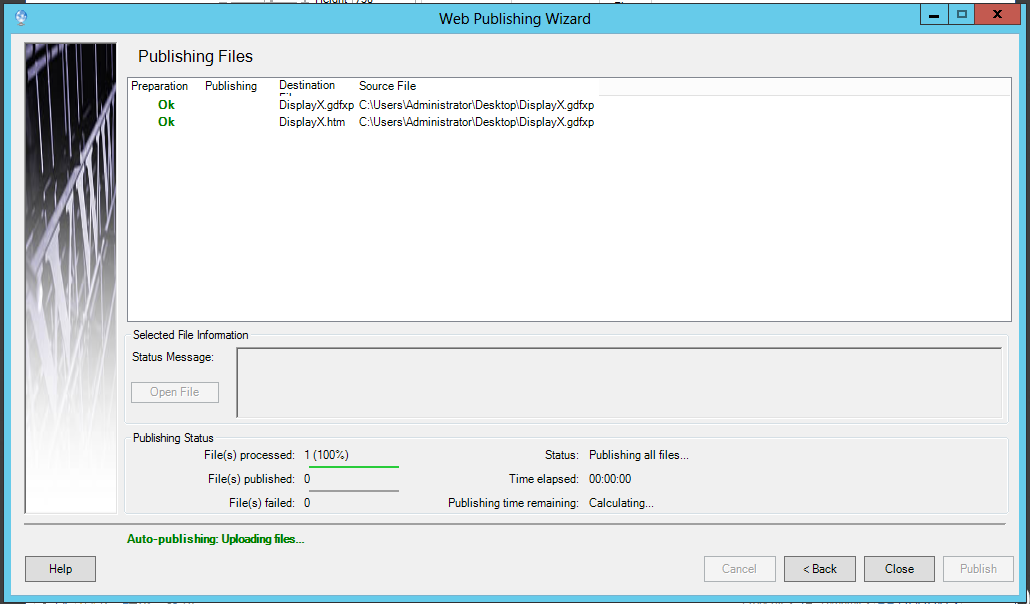 Review File(s) To Be Published Section of the Web Publishing Wizard