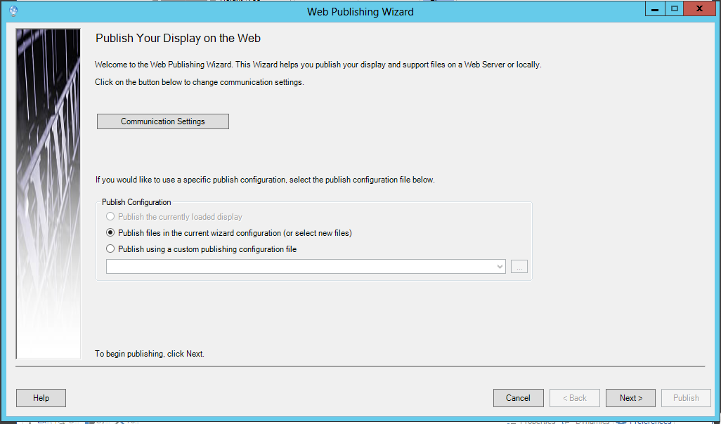 Click Publish (or Next) to publish the selected files to the server. A message appears that the files have been published successfully to the server or provides information about any warnings or failures in the publishing process. You will also have the option to Save Publish Configuration.