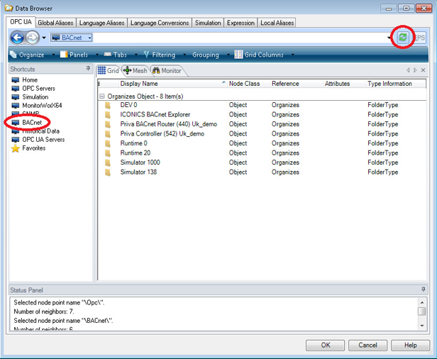 NOTE: It can take some time to create a runtime application pool as all BACnet devices need to be scanned (broadcasted). You can also click on Refresh button to refresh the list of devices in Data Browser.