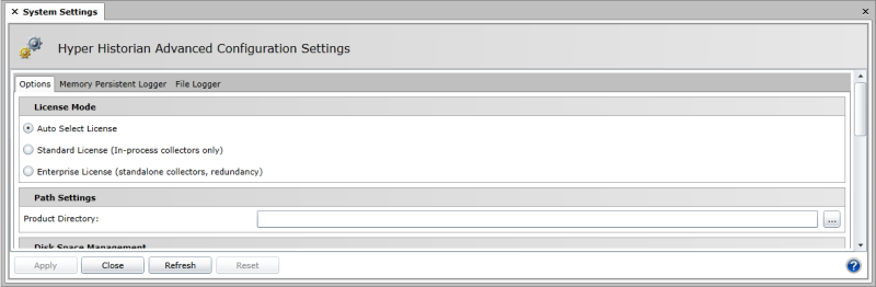 Users of Hyper Historian Enterprise Edition have the option of running the Hyper Historian Logger in Auto Select, Enterprise, or Standard mode if the Hyper Historian is running on a single PC/workstation (non-redundant single workstation). Running the system in Auto Select mode provides optimal performance within Hyper Historian based on the type of configured collectors. Running the system in Standard mode provides better logging performance and the possibility of achieving higher throughput rates on a single-PC solution.