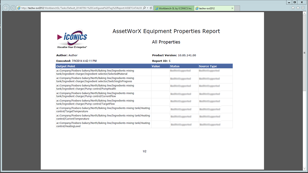 Configured Tag Report Opened Within the Workbench