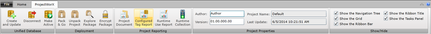 Configured Tag Report Button in the Project Reporting Section of the ProjectWorX Ribbon in the Workbench