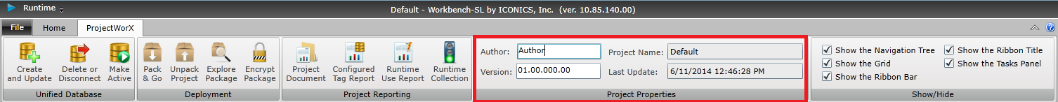 Project Properties Section of the ProjectWorX Ribbon in the Workbench