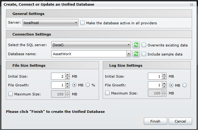 If you haven't created a unified database in either the initial product installation or within the Configure System tool, you can still utilize a unified database for use within your the Workbench project.