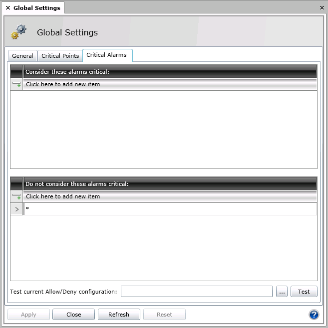 Global Settings - Critical Alarms Tabs