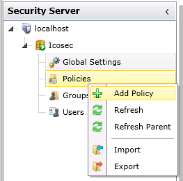 1. Right-click Policies to reveal the pop-up menu, as shown below.