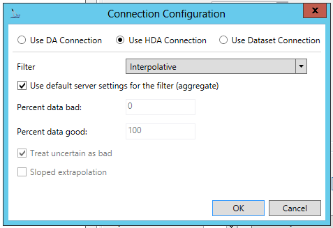 Percent data good - If the "Use default server settings for the filter (aggregate)" checkbox has not been checked, you can enter a percent of good data for the filter (aggregate).