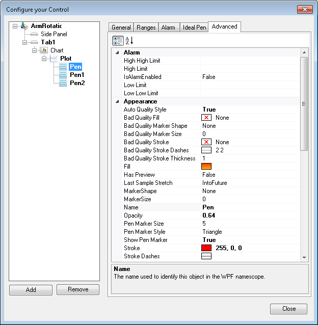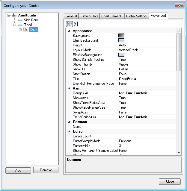 Advanced Options for a TrendWorX64 Viewer Control, Tab, and Chart