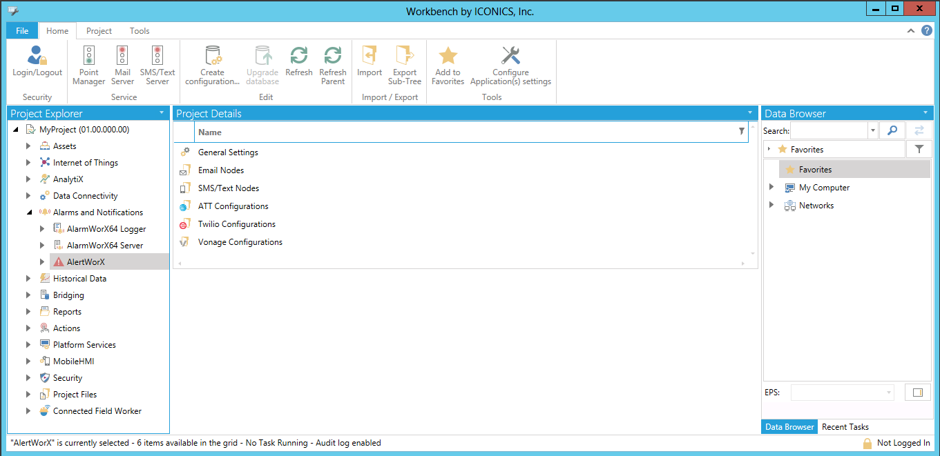 AlertWorX Provider Selected in the Workbench