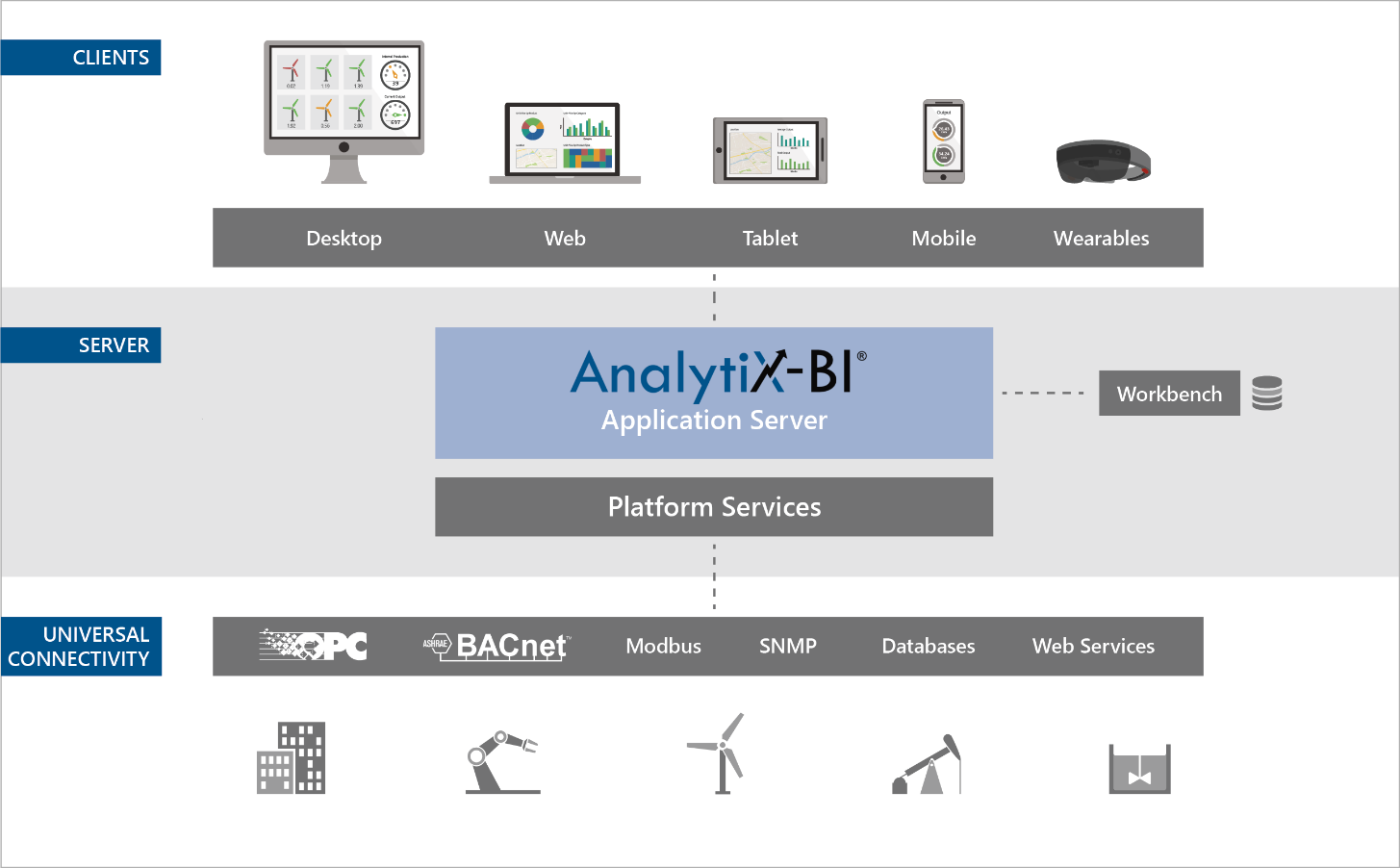 There are many ways to use AnalytiX-BI, but the diagram below outlines the most common and most powerful architecture, and the way the pieces are designed to work together.