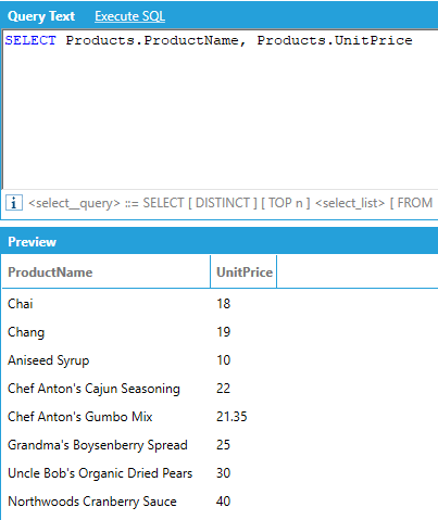 It is possible to sort the results of an AnalytiX-BI query using the ORDER BY clause. For example, to sort products from the most to the least expensive:
