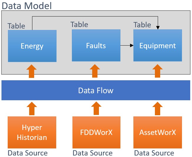As it shown by the picture above, a data model is similar in concept to a SQL database – it contains tables (datasets) of data and relationships between tables. Each data table has an associated data flow that describes how to ingest and process the data that is loaded in the table.