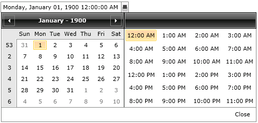 Select your date and time then click 'Close'. Your selected day, date and time will appear in the text entry field.