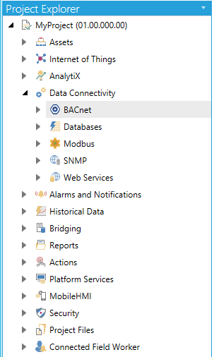 You'll see the BACnet node of the Project Explorer, as shown below.