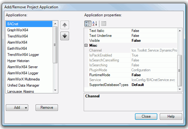 Click on the Add button, then select "BACnet". Once you have completed selecting your desired application(s), click on the Close button.