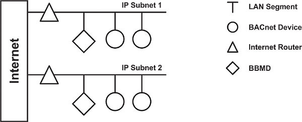 An interesting attribute of the Building Automation and Control Network (BACnet) is that Ethernet is supported along with several data links, and communication between the various data links is possible through the use of routers. Each data link is treated as a separate network and the collection of data links is considered a single BACnet internetwork. BACnet routers facilitate the connections, but when BACnet/IP is used as one of the data links, adjustments must be made to how BACnet routers are used in an IP network.