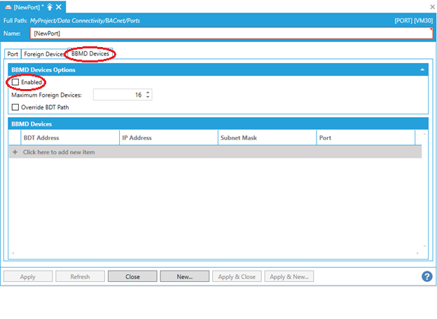 NOTE: If you want to connect directly to “Foreign device”, then enable the checkbox “Foreign device” and set the BBMD parameters appropriately.