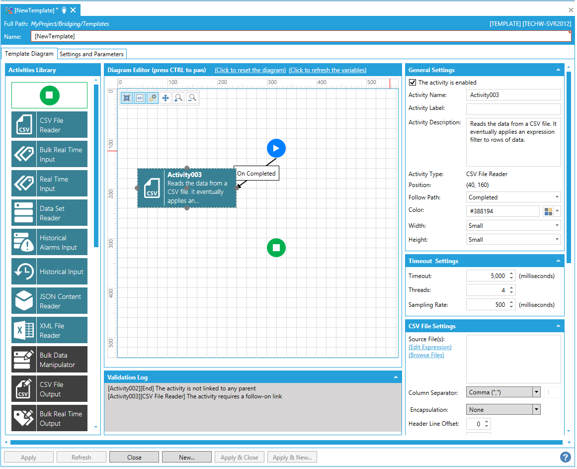 Activity Type - Reads the data from a CSV file. It eventually applies an expression filter to rows of data.