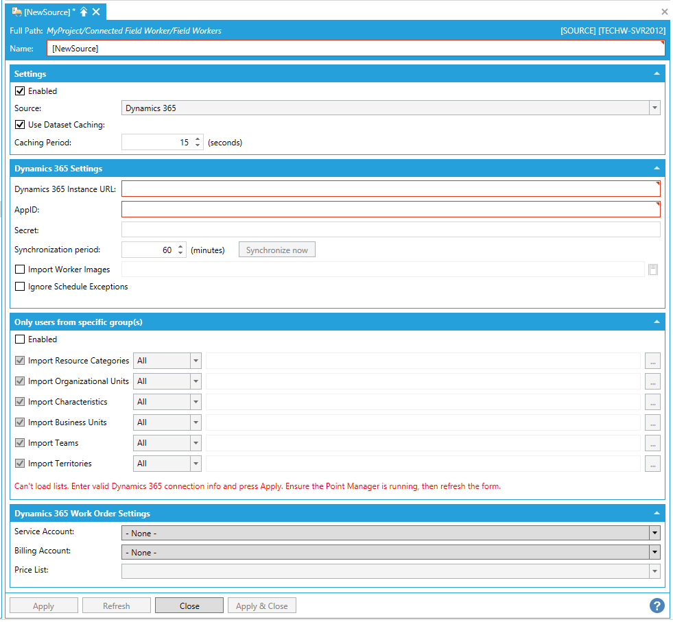Field Workers - Dynamics 365 Source Configuration