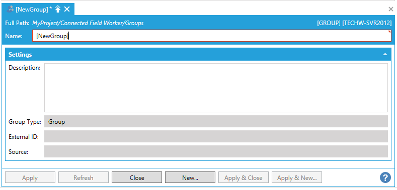 Select the Field Workers branch in the Project Explorer then click on the Add Group button, shown below, in the Edit section of the Home ribbon in the Workbench.