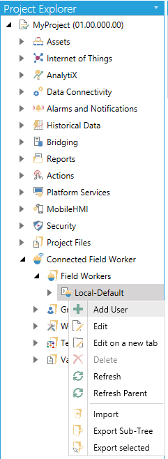 Add User from the Project Explorer