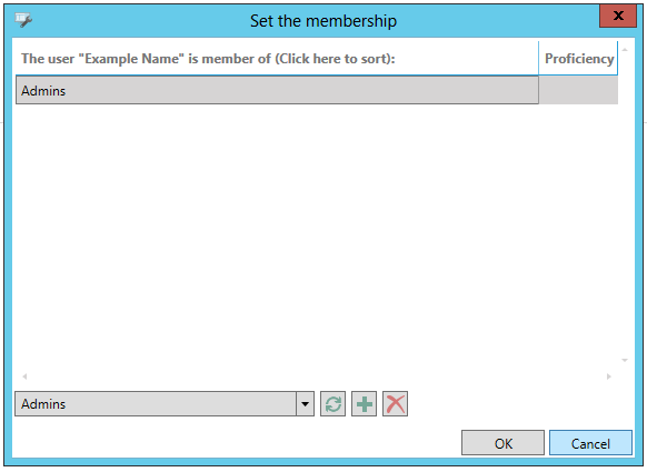 If a User is already associated with a Group, the Group will be listed within the window, along with any associated Proficiency.